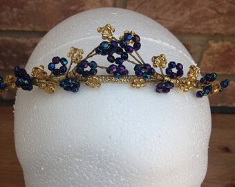 Gold and Midnight Blue Beaded Tiara. Wedding. Bridal. Bride. Prom