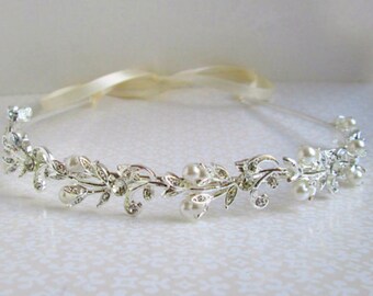 wedding Headband Silver Bridal Headband pearl hair vine Silver Wedding Hair Accessories crystal Tiara bridal Hair ivory pearl white