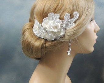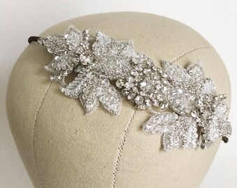 Bridal Headpiece "Lavinia" Beaded Vintage Style Lace & Crystal Bridal Side Tiara, Wedding Headdress, Headband, Hairband