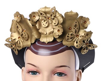 Butterfly crown, flower halo, couture crown, photoshoot prop, gold crown, photography prop, wedding crown, photo props, festival headpiece