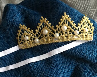 Newborn Baby Headband / Gold Lace Tiara Headband / Pearls Headband / Gold Crown / Baby Headband Birthday Headband
