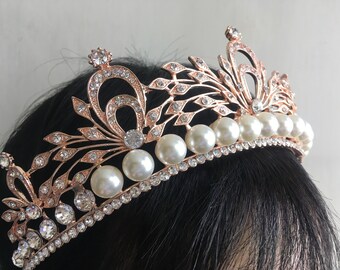 Rose gold Swarovski rhinestone crystals pearls wedding bridal crown, rhinestones crown, crystals tiara, wedding headpiece, princess tiara