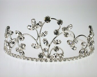 Lily Bridal Tiara with Rhinestones - Wedding Tiara - Bridal Headpiece - Bridal Hair Accessory -Silver Tiara - Flowergirl Tiara