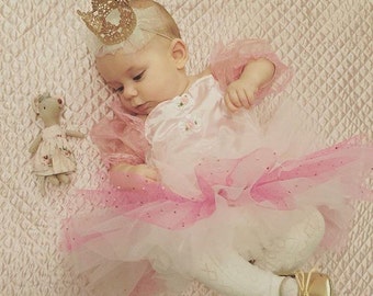 Gold Baby Tiara Headband, Ready To Ship Baby Headband, Gold Tiara, Photo Prop, Princess Headband, Newborn Baby Girls, Free Shipping