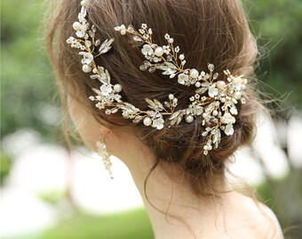 Bride Crystal Wedding Hair Comb with Bridal Leaves Hair Pins Wedding Hair Accessories Hair Piece for Women