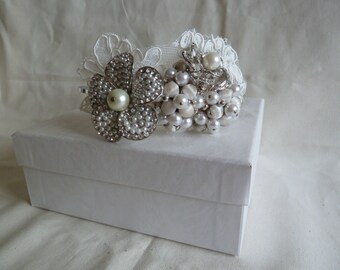 Handmade,one off, Vintage silver and diamante, pearl and lace bridal tiara. Wedding hair band, wedding hair comb, wedding tiara,