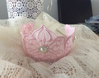 Pink and gold lace crown headband, crown headband, pink and gold, silver and pink crown
