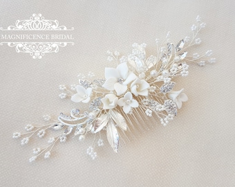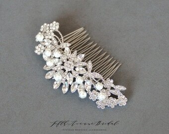 ON SALE Bridal Hair Comb Silver, Pearl Hair Comb, Wedding Hair Comb, Crystal Hair Comb, Bridal Headpiece, Floral Hair Piece LF 30044