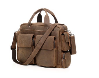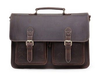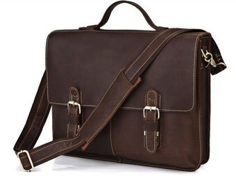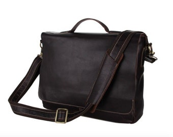 This is a dark brown genuine distressed cowhide leather messenger bag for men...or women. This bag is a simple and useful style. This bag is made to last and will age beautifully.