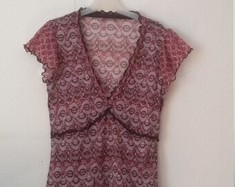90s mesh top shirt ruffles