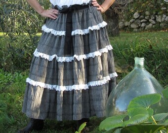Grey ruffles and lace, boho and Gypsy skirt