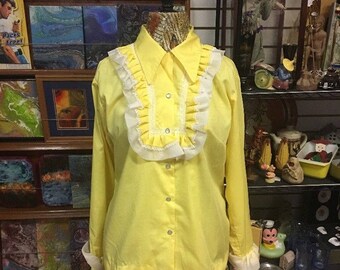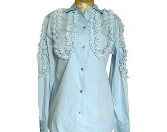 H Bar C, Vintage Blouse, Woman's Western Shirt, Ruffles Lace, size 38, 1960-70 ,Rockabilly, Retro Hipster, Vintage Western, Horse Wear, Hick