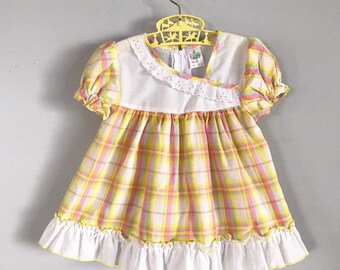 Vintage Rainbow Sherbet Plaid Ruffles & Lace Party Top by "For Kids" Size 4t - OSVKC0466