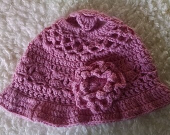 Ruffles and lace pink baby/toddler hat with attached flower