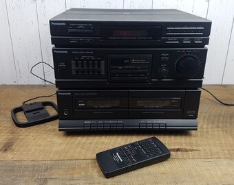 Vintage 80s Panasonic Audio Stereo Sound System w/ Remote Control SA-HM32 AM/FM Radio Tuner Amplifier Double Cassette Deck Player Antenna
