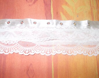 1 meter Ribbon with three ruffles lace with White Ribbon passes.