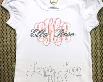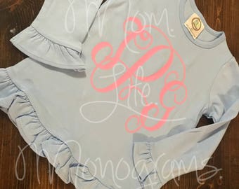 Long sleeve girls monogramed shirt with ruffles