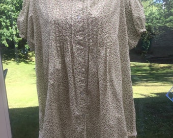 Vintage 1950’s Rockabilly Tan Green Print Woman's Shirt with Ruffles