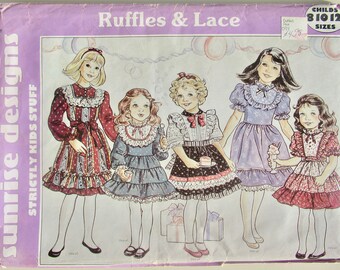 Vintage 1980s Sunrise Designs Ruffles and Lace Girls sewing pattern - 1983