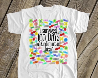 Kids 100 days of school shirt - survived 100 days of kindergarten (or any grade) - fun hundred day tshirt for students MSCL-012