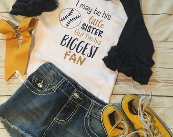 Baseball T. Baseball Sister Raglan. Baseball shirt ruffles. Navy raglan
