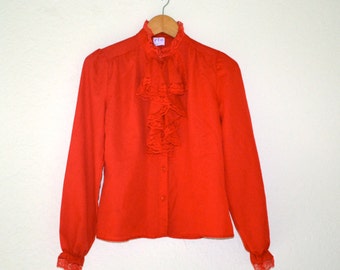 80s Vintage Red Shirt with Ruffles and Lace Size Small Peasant Victorian Shirt