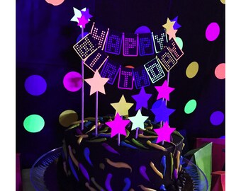80s cake topper - neon cake topper - glow cake topper - neon party - glow party - neon party decor - neon birthday - 80s party