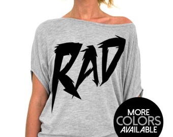 Rad - 80's Theme Slouchy Tee Shirt (Small - Plus Sizes) - More Colors Available - Black, Gray or White Tees