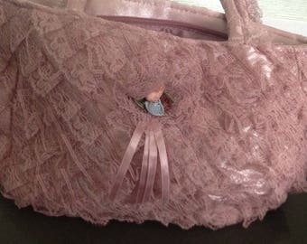 Vintage handbag with ruffles and lace, rose'