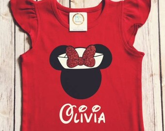 Girls Disney Cruise Minnie Mouse Sailor Shirt Ruffles Red