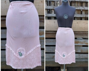 Vintage 1950's pale pink with ruffles and lace half slip knee length
