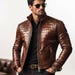 Mens Maroon Red - Black Croco Embossed Effect Two Tone Slim Fit Motorcycle Biker Genuine Leather Jacket, Mens Red Croc Effect Leather Jacket