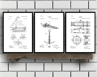 Nautical Patent SET of 3 - Nautical Patent - Nautical Art - Nautical Patent - Mancave Decor - Nautical, Sailing Art, Home Decor SP460