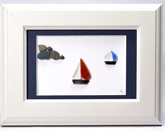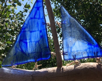 Fused Glass Sail Boat Wind Charm on BC Coastal Driftwood