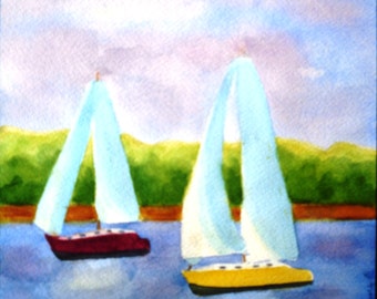Art Print from Original Watercolor : Sailing By Day