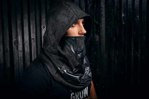 Cyberpunk clothing, Deus ex clothing, Futuristic clothing, leather scarf, Scarf with hood