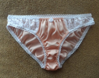 Silk Knickers, Women Sleepwear, Silk Sleepwear, Peach Silk Panties with Lace Insert Handmade