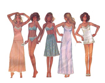 McCall's 5358, 70s sewing pattern, size 12 bust 34" lingerie pattern, camisole, lace panties, lace bra slip and half slip