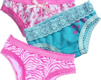 18" Doll Cute UNDERWEAR - 18" Doll 3 pc Deluxe Set - Doll Clothes: Adorable Panties - Zebra Design - Flower Design - Heart Design