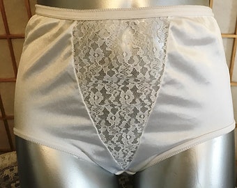Vintage White Nylon Panties with Lace Hong Kong Size 10