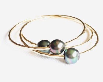 Bangle Leah - Tahitian pearl bangle - Tahitian Pearl bracelet - Tahitian Pearl Bangle - Beach Bangle - Gold filled bangle. (B106)