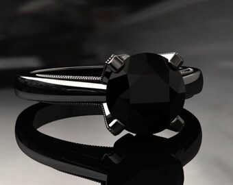 Black Diamond Ring Natural 1.00CT AAA Quality Black Diamond Engagement Ring 14k or 18k Black Gold Matching Wedding Band Available W3BKDBK