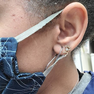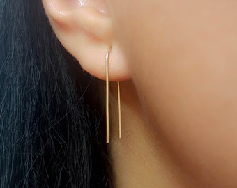 Simply insert the skinny bar into your ear piercing and pull it through until the "U" shaped section settles in your piercing, super simple and easy to do!