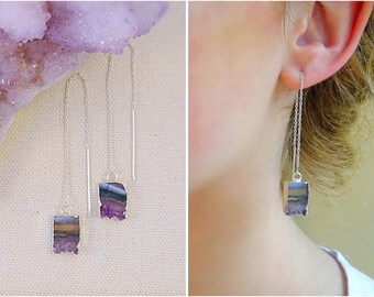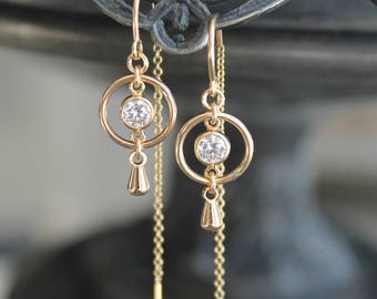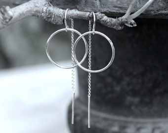 Dainty pair of 925 sterling silver threader earrings with small eternity rings. Beautifully simple and modern, with great movement.