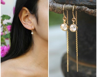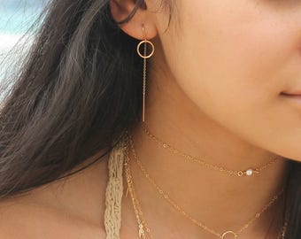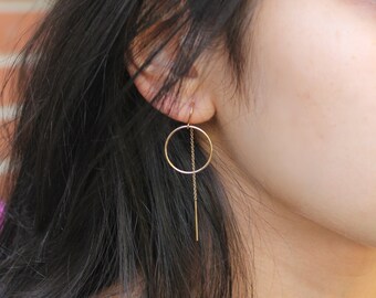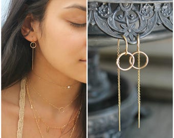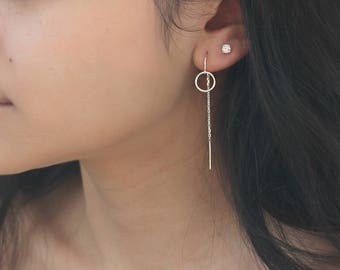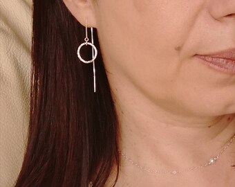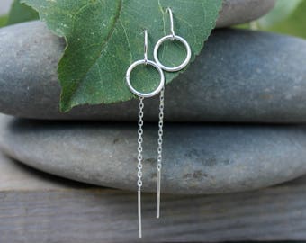 See moreThreader earrings, 925 sterling silver, threaded thread with eternity circle ring, pair dangle drop earrings, simple everyday jewelry