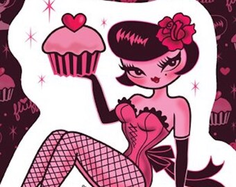 Fluff - Cupcake Doll Girl with Fishnet Stockings, 4.25"x 5" by Yujean JA621