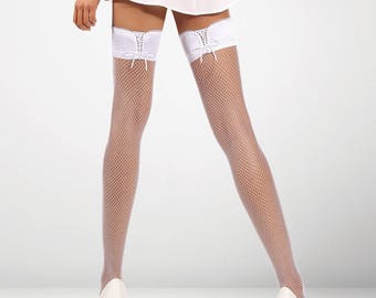 Wedding Stockings (195), White Hold Ups, Wedding Lingerie, Ladies Underwear, Fishnet Stockings, Gifts for Her