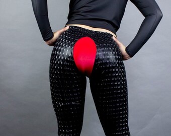 Crotchless Custom Leggings Pants in Spandex Vinyl alternative to latex