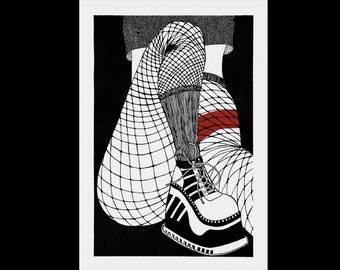 Mimi Van Bureen Fishnet Stockings Lingerie Poster Art Pinup Girl Artwork Photo 11x14