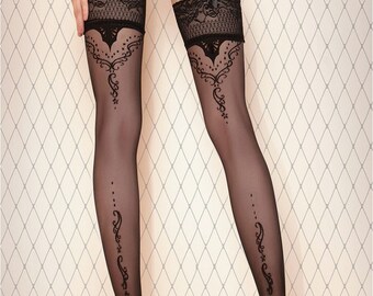 Stockings (423), Black Hold Ups, Ladies Underwear, Lingerie, Suspender Belt, Gifts for Her, Pattern Stockings, Pattern Tights